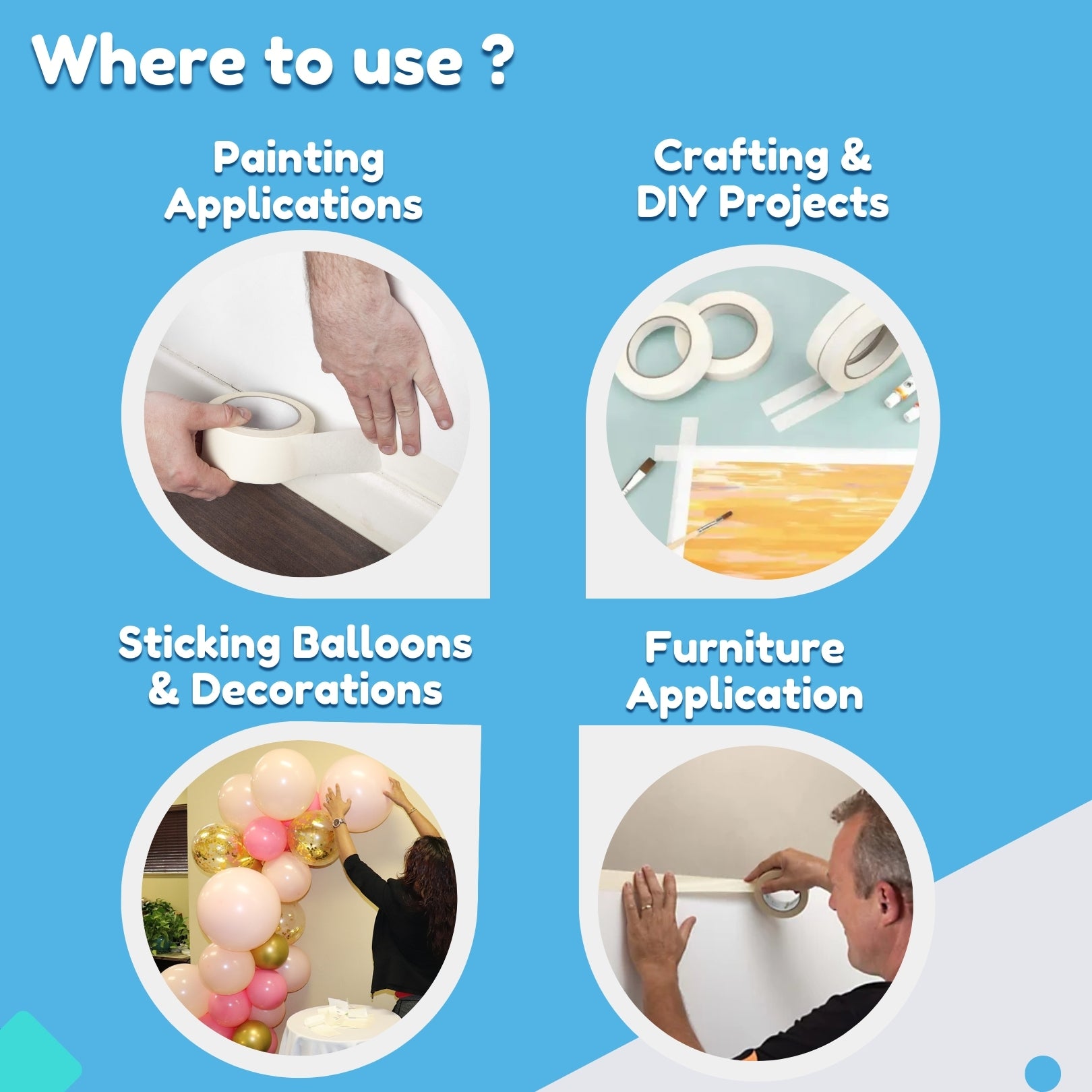 - DIY applications for labeling supplies, holding lids in place