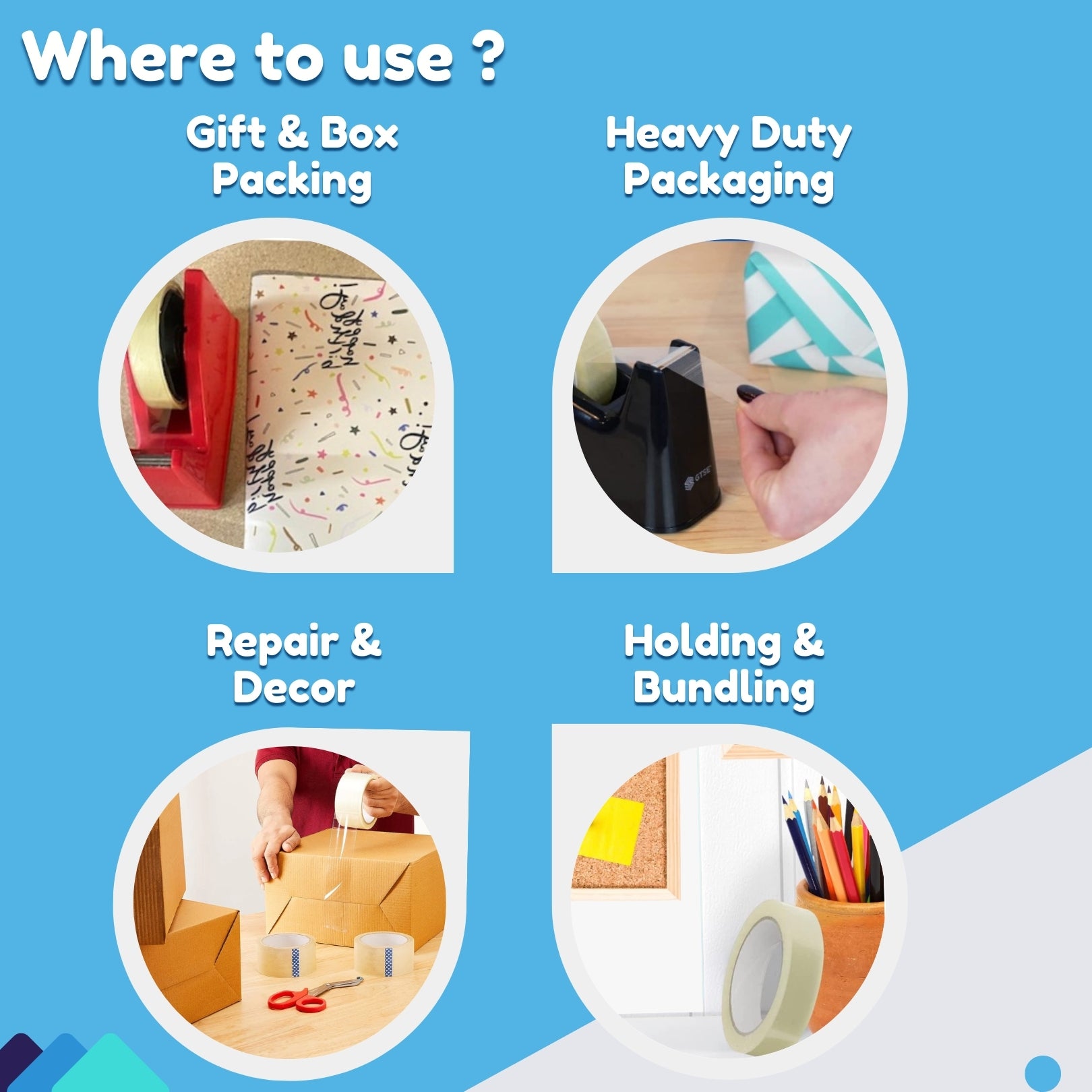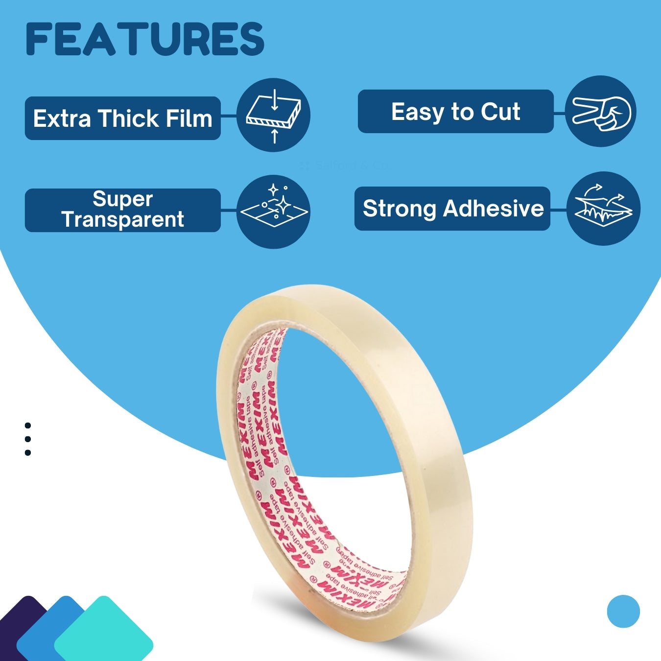 Mexim Red BOPP Packaging Tapes 12mm X 65 meters, Transparent, High Strength Self Adhesive Box Packing Tape